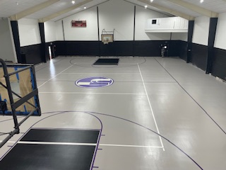 • Application: For the application phase, initial plans to apply the epoxy with a T-bar were adjusted in favor of rolling, which provided a smoother and more even application. The process included two layers of epoxy base coat, precise sport line painting, and a final clear coat for added protection and enhanced durability.